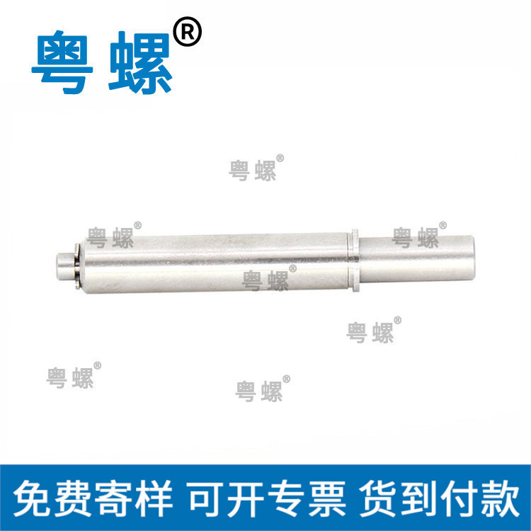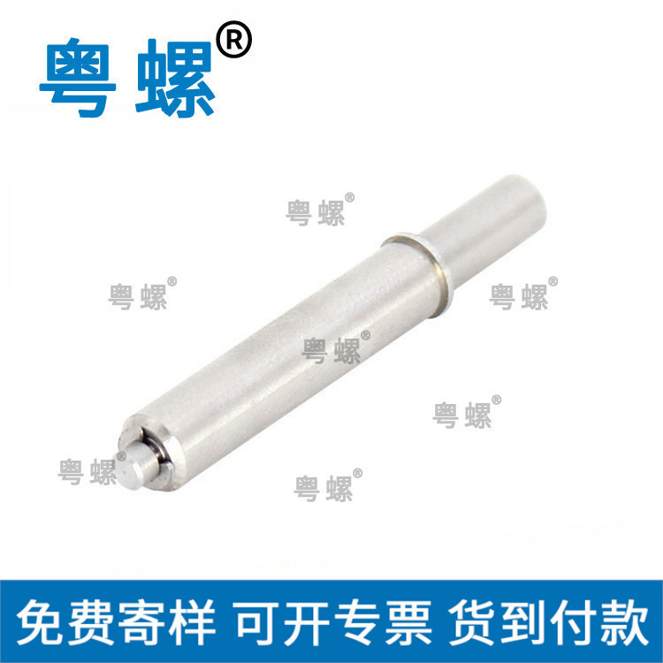 产品详情:圆柱销普遍用于机器装置上组件之间的定位或连接。圆柱销通过过盈配合固定在销孔中。圆柱销一般而言用到磨床机和冲子成型器来完成加工,但是上述加工方式操作步骤繁杂,加工装置高,加工成本高。@更进一步设立为:销帽与销杆之间的接头处设有圆形倒角,销帽处设有倒角,千斤顶本体的端部设有倒角。承压部和承压部均为柱状结构,承压部的外径大于承压部的外径,承压部为阶梯状,承压部的下端直径铆接部分低于压力铆接部分。铆钉部上方的直径。一般而言状况下,圆柱销与销孔采用紧配合的方式,例如圆柱销与电机轴上销孔的配合。销孔采用紧密配合的结构,装配时需将有销孔的轴正确定位,然后将圆柱销与销孔指向,然后将销敲击或压入配合。圆柱销被压入销孔中。在现有技术中,从未专门用于圆柱销安装的设备。在组装过程中,需两个或两个以上的人配合才能将圆柱销插入销孔。生产效率低,难以确保圆柱销的安装质量。广东粤螺五金实业有限公司采用以下技术方案:防淡出圆柱销,包括圆柱销体,圆柱销体的外表面设有沿圆周方向形成一环形槽,该环形槽从圆柱销体结构的外表面向内渐渐收缩,该环形槽用于锁定相应的销孔铆接点。