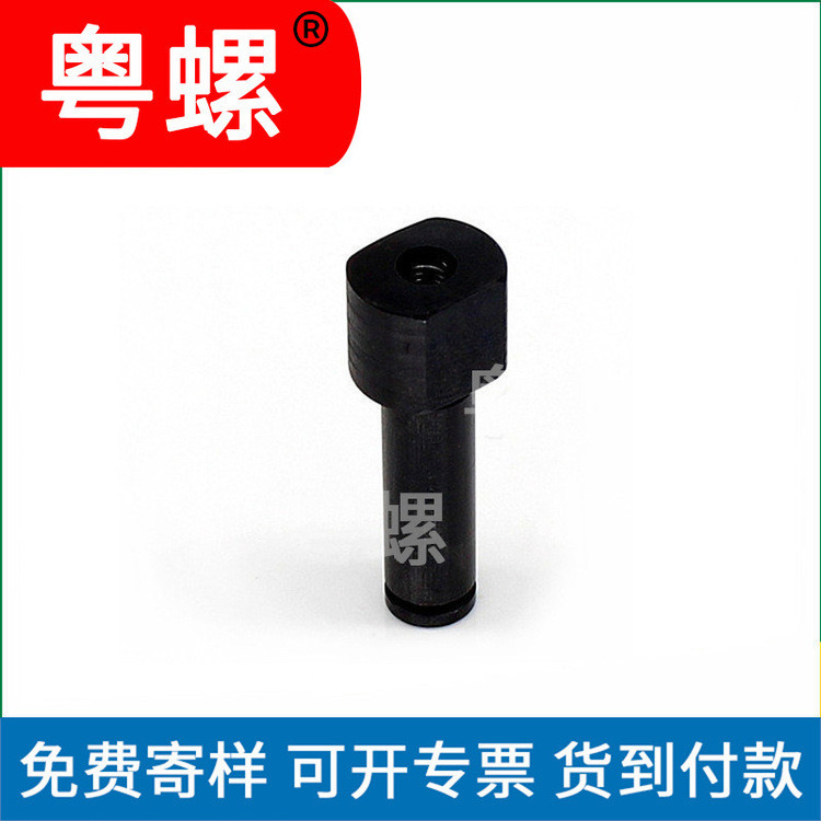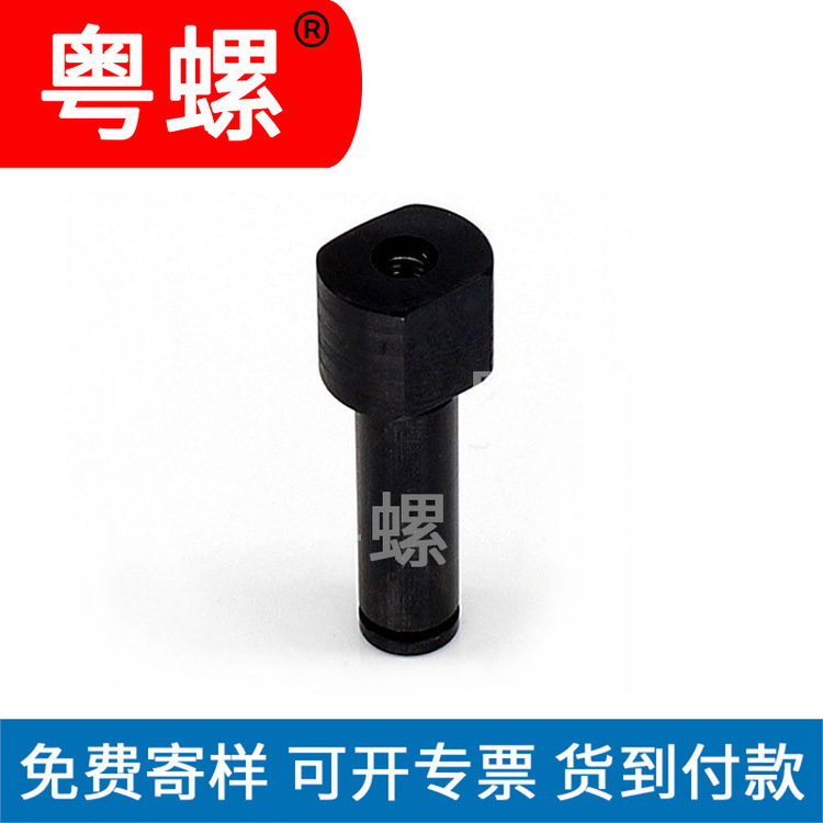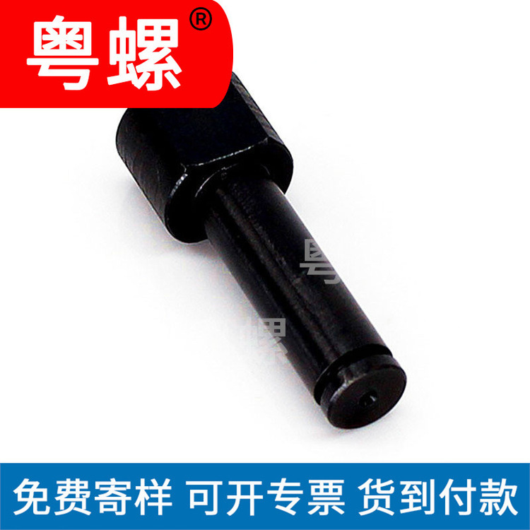 产品详情:广东粤螺五金实业有限公司使用以下技术方案:一种防脱出圆柱销,包括圆柱销体,圆柱销体的外表面沿圆周方向设有环形槽,该环形槽从内日益向内收缩。在圆柱销体结构的外表面上,环形槽用以锁定相应的销孔铆接点。在现有技术中,用以安装幕墙的梁主要分成两种:闭腔结构和敞开结构。在梁与柱之间的连接方面,主要使用角铝连接**闭腔结构梁。连接角铝后,梁上表面的两边都有明螺栓,这在美学和性能上都十分差。**对于具开放式结构的梁,在实际上连接时,首先将角铝的一个角固定到梁上,然后将角铝的另一个角固定到已连接到立柱上;由于敞开式结构的梁中的工作空间有限,角铝不易可靠安装,且安装费力。当幕墙板沉重时,梁会扭曲,引致梁开口的角撑板落下。此外,由于开口结构本身的限制(一个角撑板或带扣套),铝含量在模具制造过程中,需安装大量的定位销来固定两部分之间的相对位置。定位销一般而言沉入模具上的定位销孔中。由于在组装过程中需不时拉出模具,因此请拆下零件并展开校正。同时,在维修模具时,需将定位销拉出以取出损坏的零件开展维修。因此,拔销的工作量较为大。现有的方式有:1)。在安装销钉时,操作员使用与销钉的螺纹孔相匹配的自制长螺钉将其拧入销钉,然后用锤子将销钉孔指向以击中螺钉以使销钉卡住,然后用手拧下螺丝。缺陷是:一方面,锤子击中了螺丝。螺丝易于损坏或变形,无法正常使用。另一方面,用手拆卸螺钉很吃力,也许无法拆卸。4)拔出销钉时,操作员将直接用手或在钳子的帮助下将螺钉拧入销钉中。少数公司使用大销钉拔出螺钉。缺陷是用手或用钳子拉出会开销过多的精力和时间。即使使用大的拔钉器,由于拔钉器本身很重,也不便利使用。平键是一种仰赖两侧作为工作表面并通过挤压侧面来传送扭矩的键。键和键槽。一般而言将其安装在轴上,长时间使用或长时间在恶劣的工作环境中使用,平键与键槽之间不可避免地会有尘埃,油污等。由于平键并未用以拆卸的螺纹孔,因此很难将其卸下,并且在拆卸过程中。粗心的一点都会损坏平键。有两种典型的销钉切割夹具工具。图4所示的传统夹具愈发繁杂,由夹具,垫片,垫圈和剪切块的导柱,淬硬衬套,剪切块等构成。将圆柱销安装在淬硬衬套中并运用轴向载重通过剪切块完成剪切测试。由于淬硬衬套的大小类似于圆柱销的尺码,并且使圆柱销的凹口朝上,因此很难在制造之前展开安装,并且夹具的制造愈发繁复并且有着许多易耗品。测试后,折断的圆柱销保存在淬硬衬套中,很难将其取出。