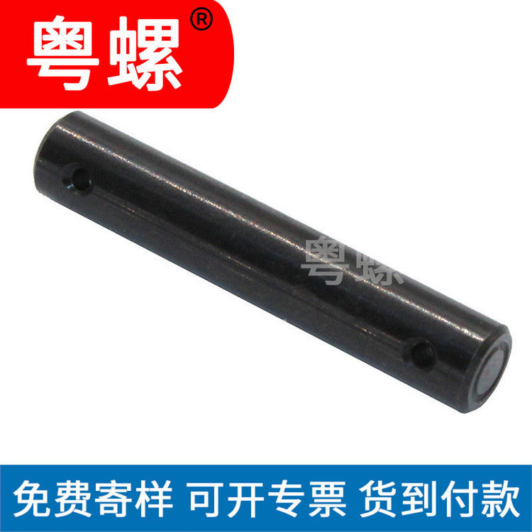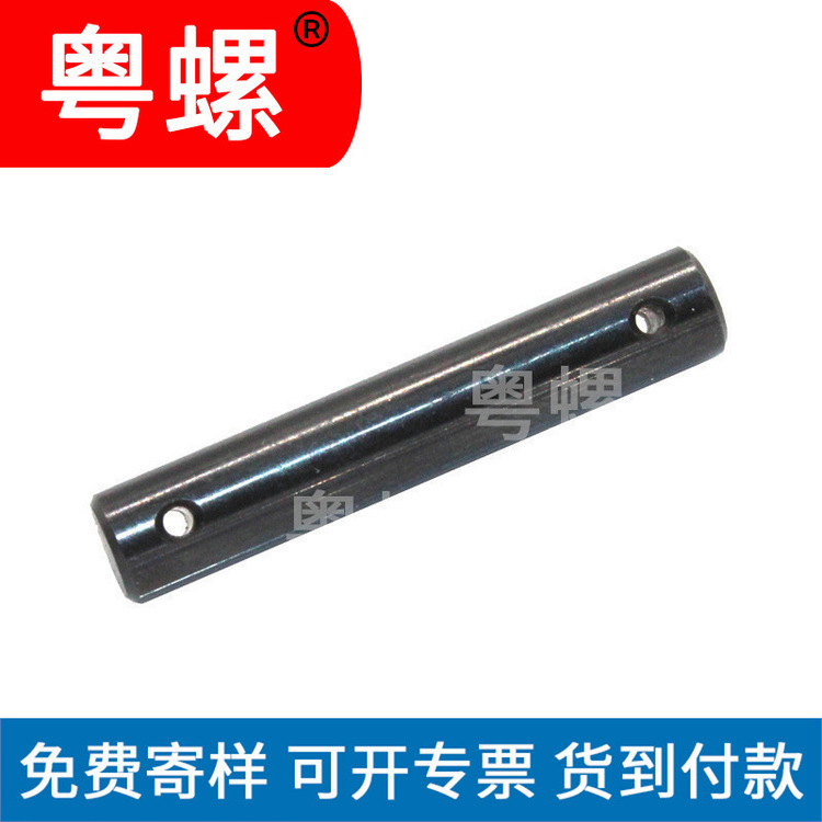 产品详情:广东粤螺五金实业有限公司采用以下技术方案:一种防脱出圆柱销,包括圆柱销体,圆柱销体的外表面沿圆周方向设有环形槽,该环形槽从内向内日趋收缩。在圆柱销体结构的外表面上,环形槽用以锁定相应的销孔铆接点。隐含双向传动的曲柄压力机(例如蜂窝煤机)需1。主轴齿轮在两侧的旋转相位须要相同;2.主轴与主轴齿轮之间的连接应无空隙。为了满足这一要求,目前有两种主要的主轴与主轴齿轮连接方案。方案1,方案的一端或两边主轴和主轴齿轮通过平键连接。该方案要求主轴和齿轮毂之间的匹配空隙很小,因此加工,组装和维护都很难于。方案7,主轴和主轴齿轮的一端或两边采用锥套连接,该解决方案性能好,成本高,刚性差。广东粤螺五金实业有限公司更进一步设立为:销帽与销杆之间的接头处设有圆角倒角,销帽处设有倒角,顶体的端部设有倒角。圆柱销与销孔采用紧密配合的方式,例如将圆柱销与电机轴上的销孔配合,由于圆柱销与销孔采用紧密的配合结构,因此销孔在组装时需正确定位,然后将圆柱销与销孔对齐,然后将销敲击或压入配合。圆柱销被压入销孔中。在现有技术中,并未专门用以圆柱销安装的设备。在组装过程中,需两个或两个以上的人配合才能将圆柱销插入销孔。生产效率低,难以确保圆柱销的安装质量。广东粤螺五金实业有限公司采用的技术方案是:销压铆接结构,包括销,型腔和压铆夹具。销为柱状结构,销的表面设有环形槽,空腔设有灯。相对于销的底部,光孔的深度大于环形槽的高度,销的下端插入光孔。压铆夹具包括压铆部和在压铆部分顶部的承压部分。在承压部上设有同轴且贯通的连接孔,销的上方套在该连接孔中。