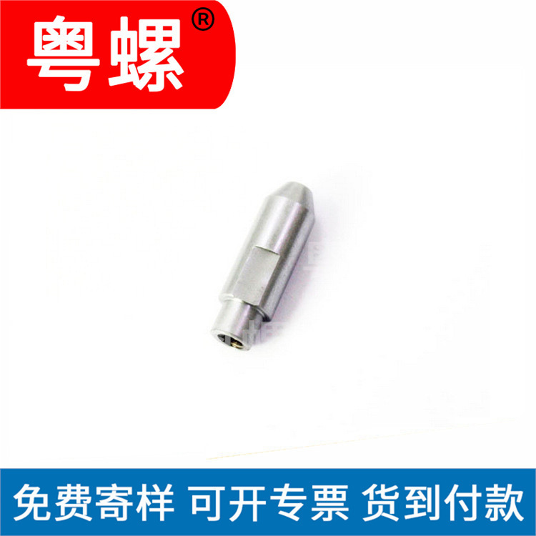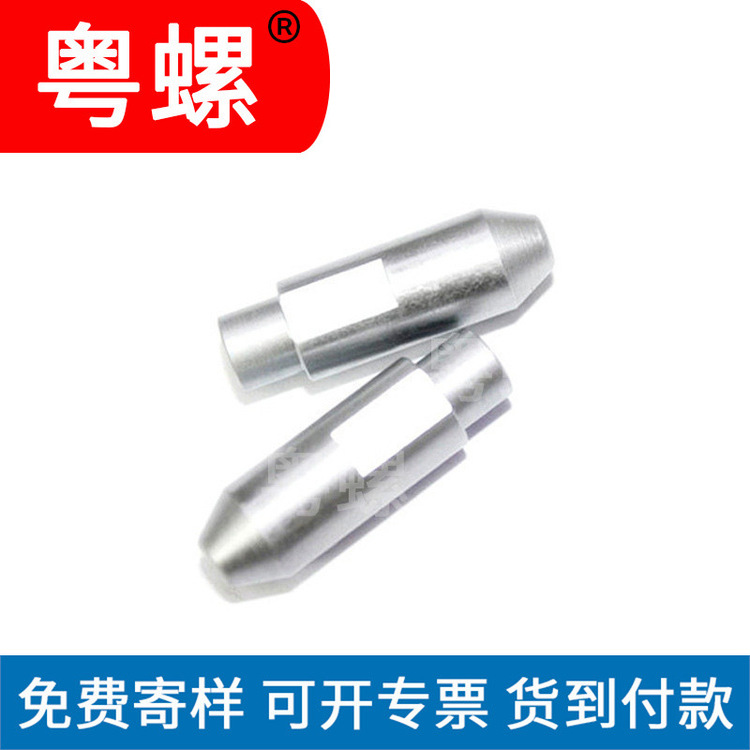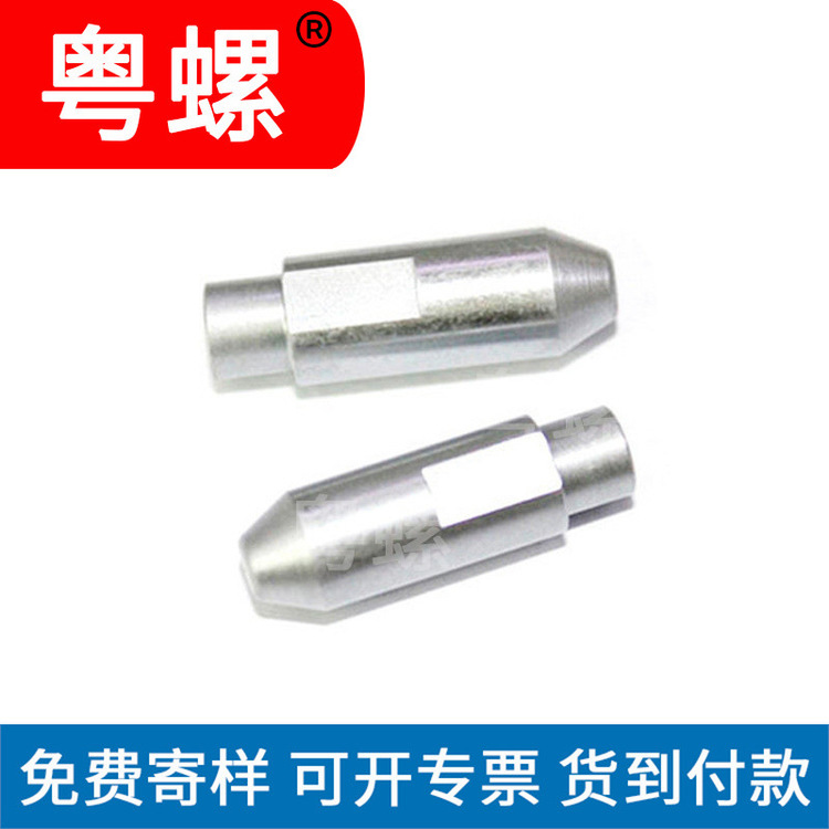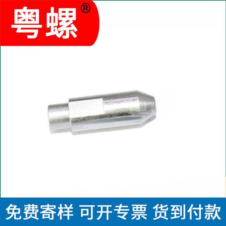产品详情:广东粤螺五金实业有限公司使用以下技术方案:一种防脱出圆柱销,包括圆柱销体,圆柱销体的外表面沿圆周方向设有环形槽,该环形槽从内向内日益收缩。在圆柱销体构造的外表面,环形槽用以锁定相应的销孔铆接点。在机器装置中,有两种安装和固定这两个零部件的方式,例如螺栓连接,焊接等。对于在较小空间中的安装和连接,例如两个直径较小的空心圆柱管的承插连接,该空间相对较小。体积小,很难采用这种方式**,并且安装和连接颇为不方便。变电站中的隔离开关需大量的维护工作。诸如隔离开关连杆之类的传动构件大都通过圆柱销连接。轴销配合一般而言为5mm且紧密。如果在维护过程中拆卸圆柱销,则由于腐蚀和机器变形经常会卡住圆柱销。由于其他缘故,很难如愿以偿展开。如果工作空间狭小,则拆卸起来会更为艰难。在传统操作中,不时采用研磨,硬撬或手锤敲击来拆卸,这将致使销的更进一步变形。在狭小的空间中,很难从诸如手锤之类的工具开始。圆柱销的拆卸疑问已成为主要瓶颈。需解决的疑问,目前大多数圆柱销的压配合是先将产品放入下模的定位位置,然后再将圆柱销放入与销同心且垂直的圆柱销定位孔中。将产品压入的孔或产品上的孔,该销需有定位向导;或将其放置在压头上方并固定以使其不会落下,然后将其压入。实质上,很难压入小的圆柱销。须要保证产品好,定位确切,圆柱销是同心的和垂直的,并且圆柱销被逐一放置。易疲惫且效率低下,产品质量控制受许多人为因素的影响,致使产品质量不安定和工作中存在一定的安全隐患;另一方面,在某些生产线中,压入圆柱销步骤的成本为相对高昂的产品,例如指形锁芯和移动部门,这会对小微企业的装置投资致使很大的成本压力。广东粤螺五金实业有限公司使用以下技术解决方案:防淡出圆柱销,包括圆柱销主体,圆柱销体的外表面沿圆周方向设有环形槽,该环形槽从圆柱销体的外表面向内慢慢收缩,该环形槽用以锁定相应的销孔铆接点。