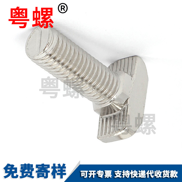 T型槽用bolt是指T型槽中使用的螺栓。T型槽使用螺栓的安装过程通常是这样的。将t形槽(通常是指t形槽铝合金型材)程度安放时,螺栓将螺栓头朝横向方向插入t形槽中,并使螺栓杆朝外,然后将螺栓轴向旋转90度度,当螺栓头变为垂直时,螺栓头不会从t形槽中掉出来,然后安装物体的安装孔指向螺栓杆并插入,然后将螺母拧到螺栓杆上。在拧紧螺母过程中,如果螺纹空隙小或螺纹毁坏或有污垢,螺栓将常常旋转,并且螺栓的旋转角度不可控且不也许。请注意,当螺栓的旋转角度在在大概90度的范围内,螺栓随时处于从t型槽中拉出的状况。即使拧紧螺母,安装对象的安装也是无效且不可靠的,并且存在严重的安全隐患。,实际上情形是,当螺栓的旋转角度超过20-30度时,安装对象的安装早已不可靠。
