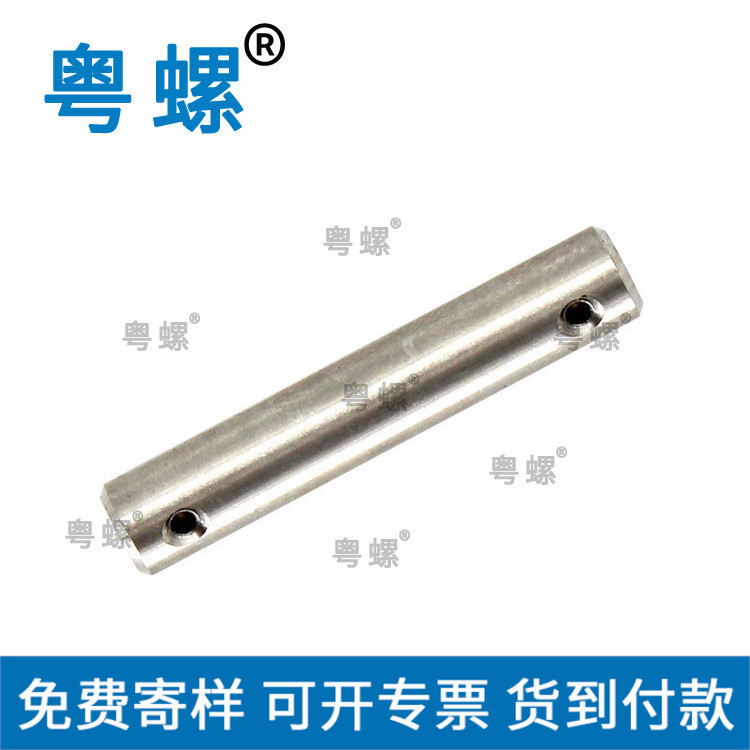 产品详情:广东粤螺五金实业有限公司使用以下技术方案:一种防脱出圆柱销,包括圆柱销体,圆柱销体的外表面沿圆周方向设有环形槽,该环形槽从内向内渐渐收缩。在圆柱销体构造的外表面上,环形凹槽用以锁定相应的销孔铆接点。目前,平常油压推土机的销止动销的止动方法主要是通过长螺栓穿越销轴止动套销孔和销轴的销孔,然后在其上使用双螺母螺栓的另一端拧紧销轴使其终止。套筒的外圆间距约27mm,以预防螺栓和螺母脱落。由于使用双螺母彼此压紧的构造,因此该销止动方式的拆卸和组装效率不高,并且每次拆卸和组装都需两个扳手,这十分麻烦。销钉铆接是生产过程中的举足轻重步骤。最初,人们使用劳动。生产效率低。同时,生产成本高。产品不良率也很高。后来,出现了一种铆钉机。在硬件产品上执行铆钉销操作。销钉铆接机可以完成销钉的安装和铆钉销钉的操作。销钉铆接机缩减了硬件生产过程中销钉和铆钉销的安装过程。但是,其构造设计不合理,操作十分困难。变电站中的隔离开关兼具大量的维护工作。诸如隔离开关连杆之类的传动构件大都通过圆柱销连接。轴销的配合一般而言为10mm且紧固。由于腐蚀,卡塞,机器变形和其他缘故,销的拆卸一般而言难以如愿开展。如果工作环境狭小,则拆卸难度更大。在传统操作中,常常使用打磨,@nz或手锤敲击来拆卸,这将引致销的更进一步变形。在狭小的空间中,很难从诸如手锤之类的工具开始。圆柱销的拆卸疑问已成为主要瓶颈。需解决。通过使用上述技术方案,销钉帽的设置使得使用者可以使用锤子或其他辅助设备易于地将销钉驱动到铸件的销钉孔中。由于千斤顶主体的较大外轮廓直径大于销子直径,因此,一旦销子“挤入”“对于销子孔,邻接体相对于销子帽的平面将与销子孔所在的平面碰撞。凸体紧紧地压在销孔上,销不会跌落。