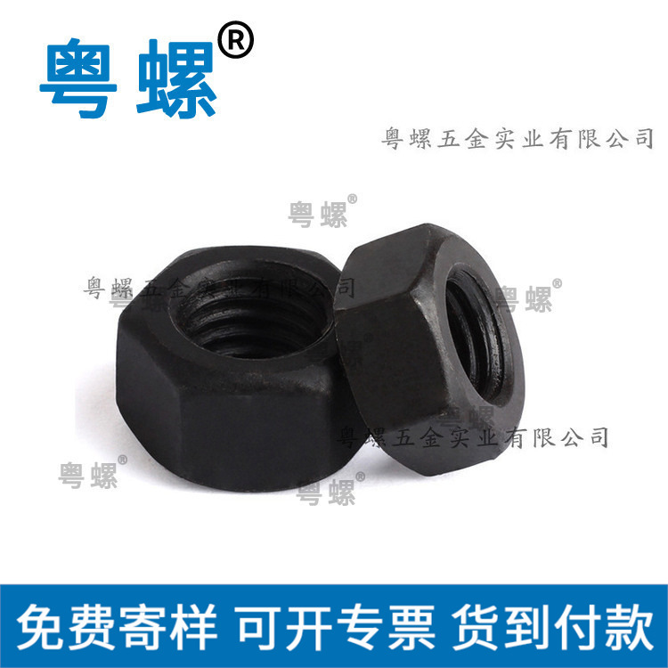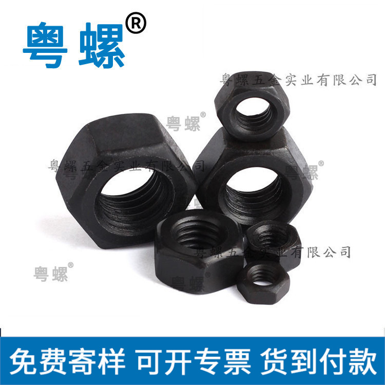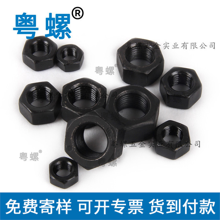 产品详情:粤螺提供的螺母。螺母是套筒形的,内部有螺纹部分。螺纹部分的一端在孔的壁上设有隆起。螺母前端的凸块与孔芯之间的间距大于螺纹段的标称尺寸,或者从后凸块沿拧紧方向到孔芯的相距低于螺纹段的标称尺寸现有的大螺钉拧紧方式一般使用8。锤击+螺母转角法将螺母拧到连接部分后,用套筒将长扳手的臂连结起来,或用锤子锤击板柄,然后将螺母转动一定视角以取得所需的预紧力。这不仅是一种原始的,劳动强度大的拧紧方式,而且还存在很大的局限性,例如有限的空间,或者螺钉本身是旋转轴等等。锁紧螺母构造包括一个平螺母和一个斜螺母。倾斜螺母的一个端面是倾斜表面,该倾斜表面与倾斜螺母的螺孔轴线的竖直线成出发点。扁平螺母和斜螺母螺母一个接一个地安装在螺栓上,两个螺母的配合接触表面包括倾斜表面,该表面依次拧紧。双螺母自锁紧固件包括一个螺栓,螺母,螺母和弹性垫圈,它们可以在压力下时有发生塑性变形;螺母与螺栓通过螺纹连通,螺母的一端设有外螺纹。一端有一个内螺纹,螺母的内螺纹和螺母的外螺纹形成螺纹对。螺母的另一端兼具通孔,螺栓穿越螺母的通孔。当螺母和螺母安装并拧紧时,弹性垫圈坐落螺母和螺母上;螺栓螺纹上设有用以在径向上切割螺纹的凹口。切口的方向平行于螺栓的轴向。