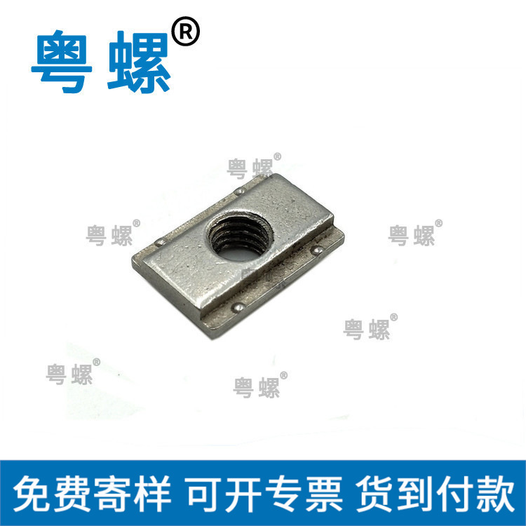 产品详情:目前,常用的锁定结构是开口销(以下叫作开口销调节螺母)或将调节螺母上的薄片敲入转向节凹槽(以下称做薄片调节螺母)。这两种结构主要用以单列轴承,而轴承单元和轮毂轴承单元则很少使用。前者结构繁琐,开口销易于脱落。后者需要工友操纵压入力。压力过大可能会引致调节螺母上的薄板结构破裂,压力太小可能会轻而易举开展调节。螺母失灵并在轴向受到冲击。六角螺母一般而言与螺栓和螺丝一齐使用以连接和紧固组件。在日常生活中,一般而言的六角螺母有时会焊接到金属板上以供使用。在将六角螺母焊接到金属板上的过程中为了保证六角螺母的内螺纹线垂直于金属板,需要在焊接之前将六角螺母的端面压在金属板上。焊接过程中会产生高温,六角螺母会部分溶化。由于焊接位置临近六角螺母的内螺纹,因此内螺纹常常变形,从而影响六角螺母和螺栓的配合。所述方形螺母包括螺母主体1,螺母。主体1为正方体形状,其边长为7.6mm,高度为2.4mm。螺母主体1的上下两端分别具高度为0.25mm的圆形突起2和圆形突起3。圆形突起脊2和圆形突起3分别以正方形形状与螺母主体1的上表面和下表面相切。圆形突起2和圆形突起3的中央部设有贯通螺母主体1的贯通孔4。贯通孔1的开口设有30°的倒角5,并设有螺纹6。在通孔4的内壁上,圆形突起2沿通孔4的开口的内周沿圆周设置有多个条。条形突起7的数量可以是随意的,完美的数量是通孔4是26。通孔4向外开口到圆形突起3的圆周设有多个条形凹槽8。凹槽8的数量可以是随意的,完美的数量是26。圆形突起如图2所示,圆形突起3向外延伸至螺母主体1,并且三棱镜设有15°倒角9。广东粤螺五金实业有限公司叙述的方形螺母的制造基本上与传统的螺母加工相同。它使用一台冲孔机在两端冲出圆形突起。圆形突起2比圆形突起3稍高,然后将圆形突起2冲孔以产生条形突起7。此时,圆形突起2的高度与平面突起的高度相同。在螺母主体1的上下端面分别设置有圆形突起2和圆形突起3,两个圆形突起分别形成为圆形突起3和圆形突起3,冲孔圆形突起3以形成带状凹部8。设置有条形突起7和条形凹槽8,从而增加了螺母主体1的接触表面的粗糙度,有效地增加了螺母主体5与紧固件之间的摩擦,并实现了不错的紧固当使用螺母达到拧紧效用时,一般而言需要用扳手固定螺母或旋转螺母以达到固定功效。在使用过程中,螺母的大小是固定的,因此您需要使用相应种类的扳手与相应的螺母组合。对于拧紧操作,如果在安装过程中使用较大型号的扳手,则无法操作螺母。找到适当的扳手需要费用时间,效率较低。