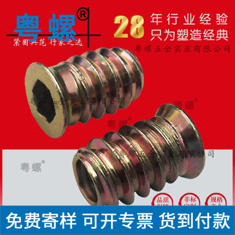 产品详情:安装螺母,其包括六角形部分i和圆柱形部分2。在六角形部分i和圆柱形部分2之间摆设有螺纹孔3,并且圆柱形部分2设置有两个凹槽4,并且每个侧面凹槽4的侧面具凸出的侧面5,这两个侧面从钣金零件7突出,如果它们被螺栓8挤压或撞击,它们将向两侧弯曲并在钣金零件上弯曲,从而使它们不被焊接。也可以直接敲击橡胶。在侧面5的上表面上设立有凸块15,以使锤击时不会打滑。目前,有两种常用的螺母固定方式。一种是焊接:能耗高,焊接过程易于致使螺母中的螺纹变形,需要再次攻丝,增加了成本,而对于铝合金等材质,焊接过程较差。易于产生焊接弱点,不能实现紧固连接的机能;另一种是通孔fix:这种方式中螺母的连接力不强,可靠性不好,不适用于薄壁型材,在使用过程中将螺母和螺栓安装做到后,插入将锁定杆从螺栓的凹槽中拉出,并使锁定杆的v形锁定齿卡入其中一个v形凹槽中,然后将锁定杆推入凹槽中。v形锁齿被卡在螺母中,在螺栓的凹槽中拉铆,从而限制了螺母和螺栓的相对旋转,并且螺母和螺栓之间有螺纹以限制相对滑动传统的铆钉螺母一般而言是圆柱形的,因此可以以防螺母松动,甚至从螺栓上松开。当您需要卸下螺母时,只需从凹槽中拉出锁定杆,即可正常卸下螺母。需要专用工具才能完成工件和薄板之间的铆接操作。锁定需要借助于工具,在具体生产过程中常常会遇见工件上有方孔的情形,在控制柜用到时需要在方孔特别是动力柜中安装螺栓。以预制方孔为主体的工件,因为工件的特别构造,安装螺母只能从侧面插入,在侧面安装空间有限的情形下无法完成安装,给安装带来了麻烦安装。